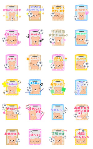 スポーツ応援スタンプ/スマホ/サッカーボール/フットサル/かわいい/部活/クマ/熊/敬語/丁寧語/承知致しました/おめでとう/了解です/お大事に/ありがとう/挨拶/mamama-chinmamama-chin より発売