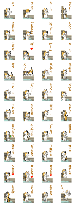 猫のスタンプです。背景付きです。 ※このスタンプはトークルームで大きく表示されるBIGスタンプです。たたら より発売