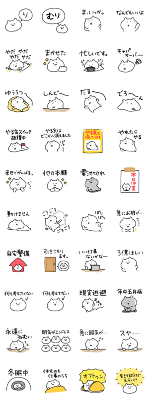 ゆるゆる~なネコの無気力スタンプ( ᐛ )年中五月病。やる気どこ~。umi工房 より発売