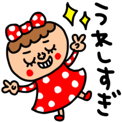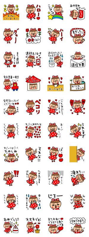 riekimの人気キャラクター赤ドットちゃんのスタンプ。riekim より発売