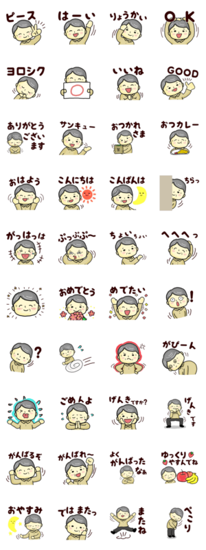 おじいちゃんのよく使う言葉スタンプです。てんじくあおい より発売