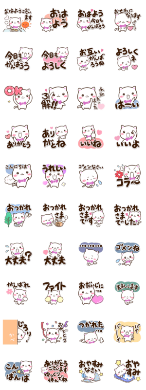 『シロネコすたんぷ』の『絵文字』と『着せかえ』もあります。シンプルで基本的な言葉を集めた、毎日便利な白猫スタンプ。しろねこ好きな方にぜひ。【かたこ】かたこ より発売