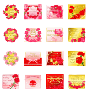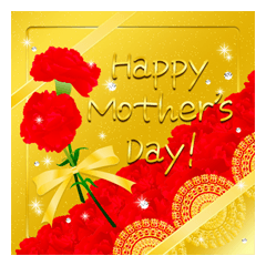 母の日。金色、キラキラ、華やかなメッセージ。 色とりどりのカーネーション。とり3号 より発売