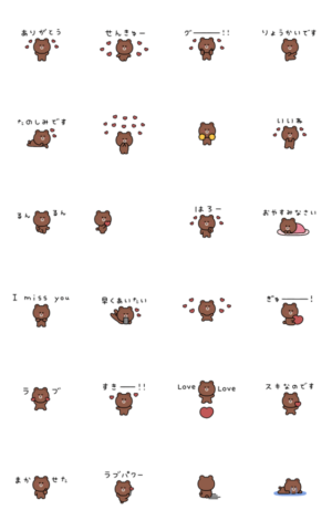 もちもち動くブラウンラブリー編。省スペーススタンプ多めで便利♪ くま/熊/クマ/ラインキャラ/かわいい/可愛い/ゆるい/カップル/恋人/彼氏/彼女/愛/使える/動物/ハート ※BROWN & FRIENDS をみんなでつくろう!キャンペーン参加スタンプですbearbear より発売
