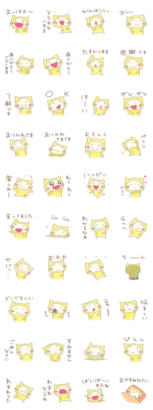 ふわもこした、どちネコが登場です。「おっはよー」「ぜひぜひ」から「楽しみ〜」まで。リラックスムードで、ほんわかメッセージを届けよう。Mami / エストループ より発売