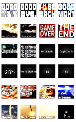 映画のワンシーンのようなシュールないつ使うのか意味不明なスタンプ goodmorninggoodbyeillbebackgoodnightoneceOnceuponatimewalkupgameovertheendhiphipHipHipHoorayグラプロ より発売