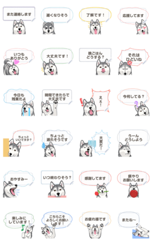 シベリアン・ハスキー(シルバー)のメッセージスタンプが犬シリーズに登場!お気に入りのワンちゃんを選んで気持ちを伝えよう!犬友とシェアしよう! 現在この商品は一部のスマートフォン版LINE 10.3.0以上のトークルームでのみ使用できます。動作環境の最新情報はヘルプをご確認ください。ShinoPict より発売