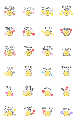 大人シンプル動くスマイルのスタンプです。 大人女子/大人可愛い/シンプル/あいさつ/使いやすい/パステルカラー/敬語/これ1つで会話ができる/便利/即レス/デカ文字/うごくhitonatsu より発売