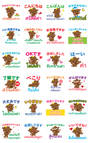 るう あいさつの言葉1 Pop-upタイ語-日本語 スタンプ画像一覧