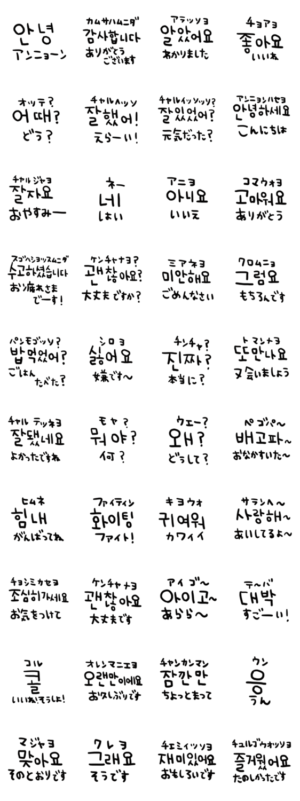 シンプルな韓国語と日本語の日常会話スタンプです。日本語&韓国語nenerin より発売
