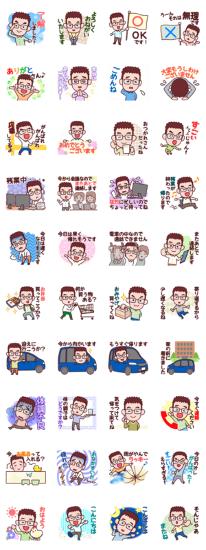 お父さんのスタンプです。家族にメッセージを送れます。(父/パパ/サラリーマン/男/挨拶/毎日/日常/デカ文字)あかずきん より発売