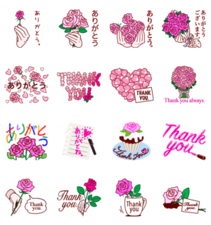ありがとう・お礼・感謝 / ピンクの薔薇 スタンプ画像一覧