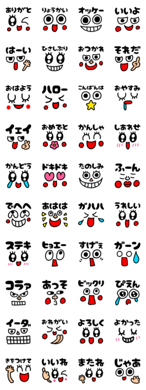 顔のスタンプ。大きい文字。分かりやすいっていいよね。riekim より発売