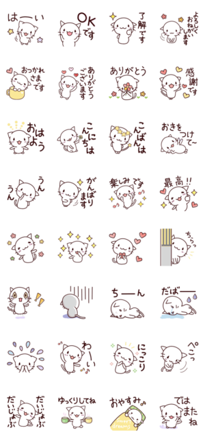 白ねこでシンプルな日常会話★よく使う系 スタンプ画像一覧