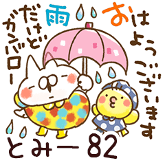 とみー/トミー専用82/ねことうさぎの名前スタンプ/天気/動く版/雨/猛暑/台風/ゲリラ豪雨/梅雨/雷/暑い/台風/地震/じめじめ/夏/雪/猫/動く/冬/山田まぽん作。