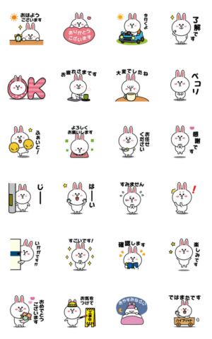 コニーの日常でよく使う言葉を集めたとっても使えるやさしく動くスタンプです。