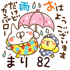 まり/マリ専用82/ねことうさぎの名前スタンプ/天気/動く版/雨/猛暑/台風/ゲリラ豪雨/梅雨/雷/暑い/台風/地震/じめじめ/夏/雪/猫/動く/冬/山田まぽん作。