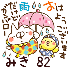 みき/ミキ専用82/ねことうさぎの名前スタンプ/天気/動く版/雨/猛暑/台風/ゲリラ豪雨/梅雨/雷/暑い/台風/地震/じめじめ/夏/雪/猫/動く/冬/山田まぽん作。山田まぽん 新 名前スタンプ より発売
