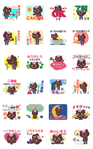 レッツぎふ公式キャラ「くま子」のスタンプ。ちょっとかしこまったコミュニケーションに、使いやすいスタンプです。レッツぎふ より発売