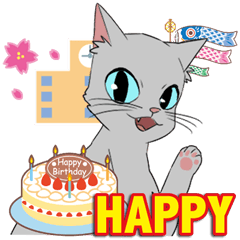 春のハッピースタンプ〜銀猫アルジャン スタンプ画像一覧