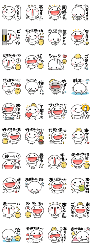 毎日使えるあいづち、お返事、あいさつ、リアクションなどなんでも揃うお得なセットです♪棒人間のちびマロが大活躍!ぴよたぬき♡ より発売