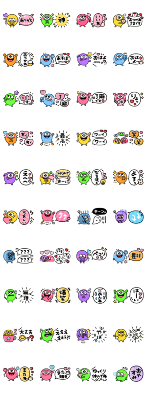 かわいいモンスター♡カラフル吹き出し スタンプ画像一覧