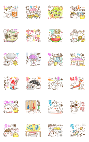 ゆり/ユリ専用82/ねことうさぎの名前スタンプ/天気/動く版/雨/猛暑/台風/ゲリラ豪雨/梅雨/雷/暑い/台風/地震/じめじめ/夏/雪/猫/動く/冬/山田まぽん作。山田まぽん 新 名前スタンプ より発売