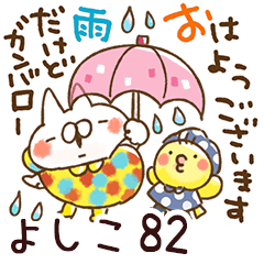 よしこ/ヨシコ専用82/ねことうさぎの名前スタンプ/天気/動く版/雨/猛暑/台風/ゲリラ豪雨/梅雨/雷/暑い/台風/地震/じめじめ/夏/雪/猫/動く/冬/山田まぽん作。山田まぽん 新 名前スタンプ より発売