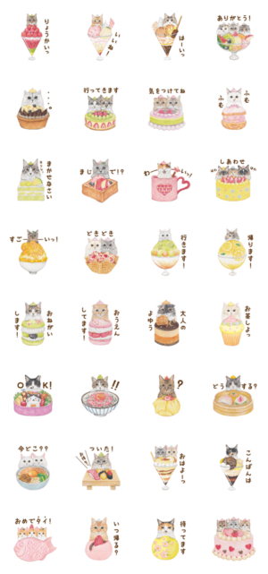 食べ物にぴったりとくっつくにゃんこ達によるほっこりスタンプ第6弾。Natsumi Otsuka より発売
