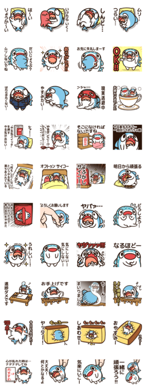 手乗りサイズの小さなサメの“ちいさめ”! やる気が出ない時や面倒な時に使えるスタンプで、ゆる~くトークを楽しんでね! 人生 辛い事もあるけど、気楽にいこー!コハラモトシ より発売