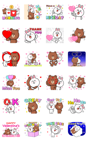 Brown, Cony, Sally animated Big Pop Ups for daily greetings. Send happiness, love, care, blessings & Happy Birthday (HBD) wishes! Make everyday Valentine's Day!