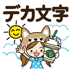 毎日使えるしばいぬのかぶり物した大人かわいい女子【デカ文字】♪大きな文字で使いやすい大人の親切で丁寧な言葉スタンプ♪ KEN graphic