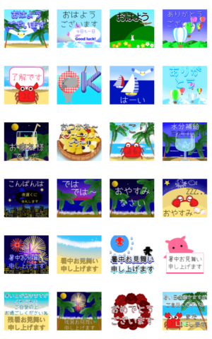 暑中見舞い(7月7日から8月7日ごろまで)や、残暑見舞い(8月8日ごろから8月末、遅くとも9月7日ごろまで)と夏用の日常挨拶のセットパック第2弾です。ちゃうちゃう より発売