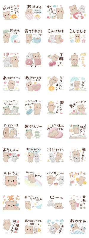 くまとうさぎのコラボがとても愛らしいスタンプです。とても癒されますね。