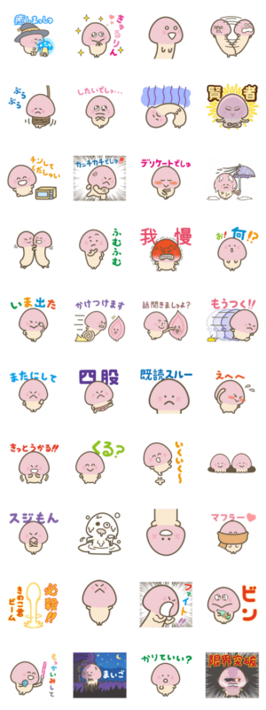 すべてのキノコ好きの皆様へ贈る、茸の妖精“きのこ君”。ファンから募集した内容で構成された愛と平和に満ちたスタンプです。