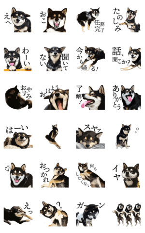 表情豊かな黒柴「すみすみ」の日常スタンプ。豆柴すみすみ より発売