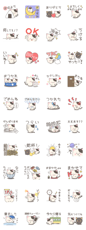 挨拶系から即レスに使える言葉を揃えました!日常で使いやすいぶちネコさんのスタンプです♪DECOR より発売