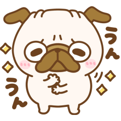パグのイラストがラブリー。言葉もあいづちなので色んな場面で使えそうです。