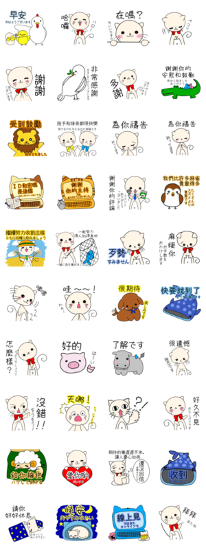 猫のJwくんと仲間たち 中国語繁体字 スタンプ画像一覧