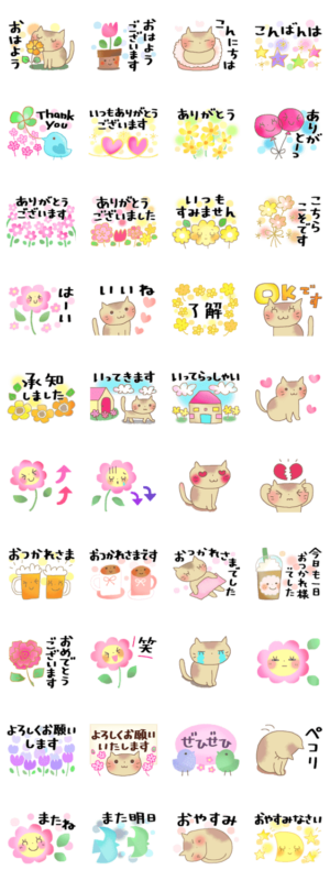 やさしい猫と花のスタンプのダウンロードはこちら↓
