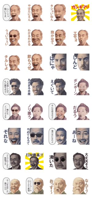 紙幣の有名人が絶対言わなそうなことを言っているシュールなスタンプで好きで良く使っています。