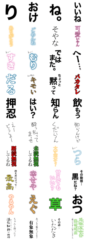 毎日使えるワードを超デカ文字で送れるスタンプ【面白い/ネタ/煽り/金欠/酒/ニート/社畜/仕事/上司/同僚/先輩/無職/飲み会/恋愛/彼氏/彼女/浮気/束縛/カップル】