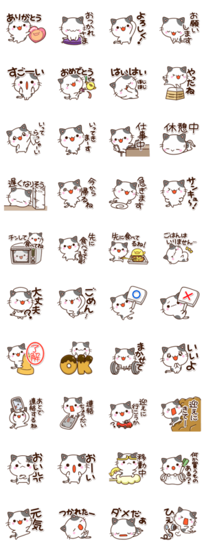 『ちびブチ』の【絵文字】と【着せかえ】もあります。ぶちネコの、家族や、友達、恋人等、親しい人との連絡に使える猫スタンプです。ねこ好きの方にぜひ。【かたこ】かたこ より発売