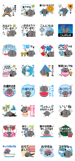 夏イメージがいっぱいのかわいいちびねこスタンプ♪親切で丁寧な言葉♪ KEN graphicKEN グラフィック より発売