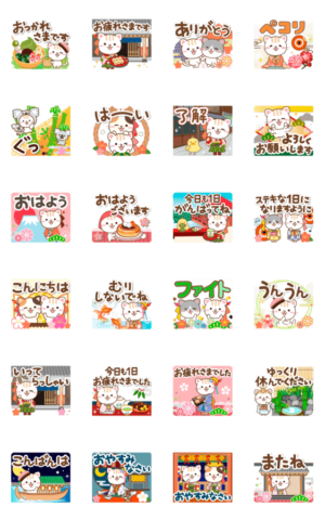 大人のためのねこ♥動く和風スタンプ3 スタンプ画像一覧