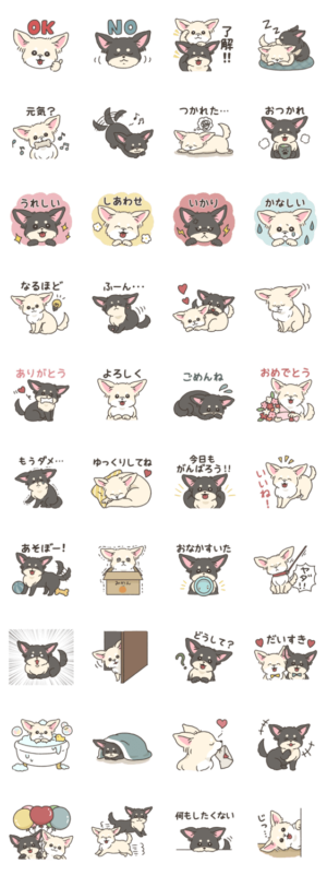 かわいい白チワワと黒チワワの毎日使いやすいスタンプ、第二弾♪友達や家族の連絡に。…犬/いぬ/チワワおふっこ より発売