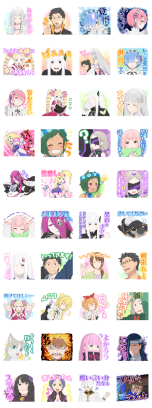 大人気異世界生活アニメのスタンプです。表情豊かなキャラクターたちをラインに飾りましょう。