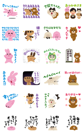 いらすとやのうさぎといぬとねことくまが遊んでいるところに、声優の神谷浩史さんが声をつけてくれてさらに楽しそうになったスタンプです。