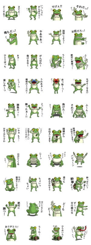 カエルの能力を持つ謎の生命体「かえるのようなもの」のスタンプです。KOUSHOU より発売