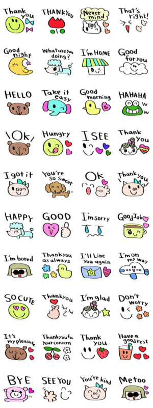 nenerinシンプル日常会話スタンプ301英語 スタンプ画像一覧